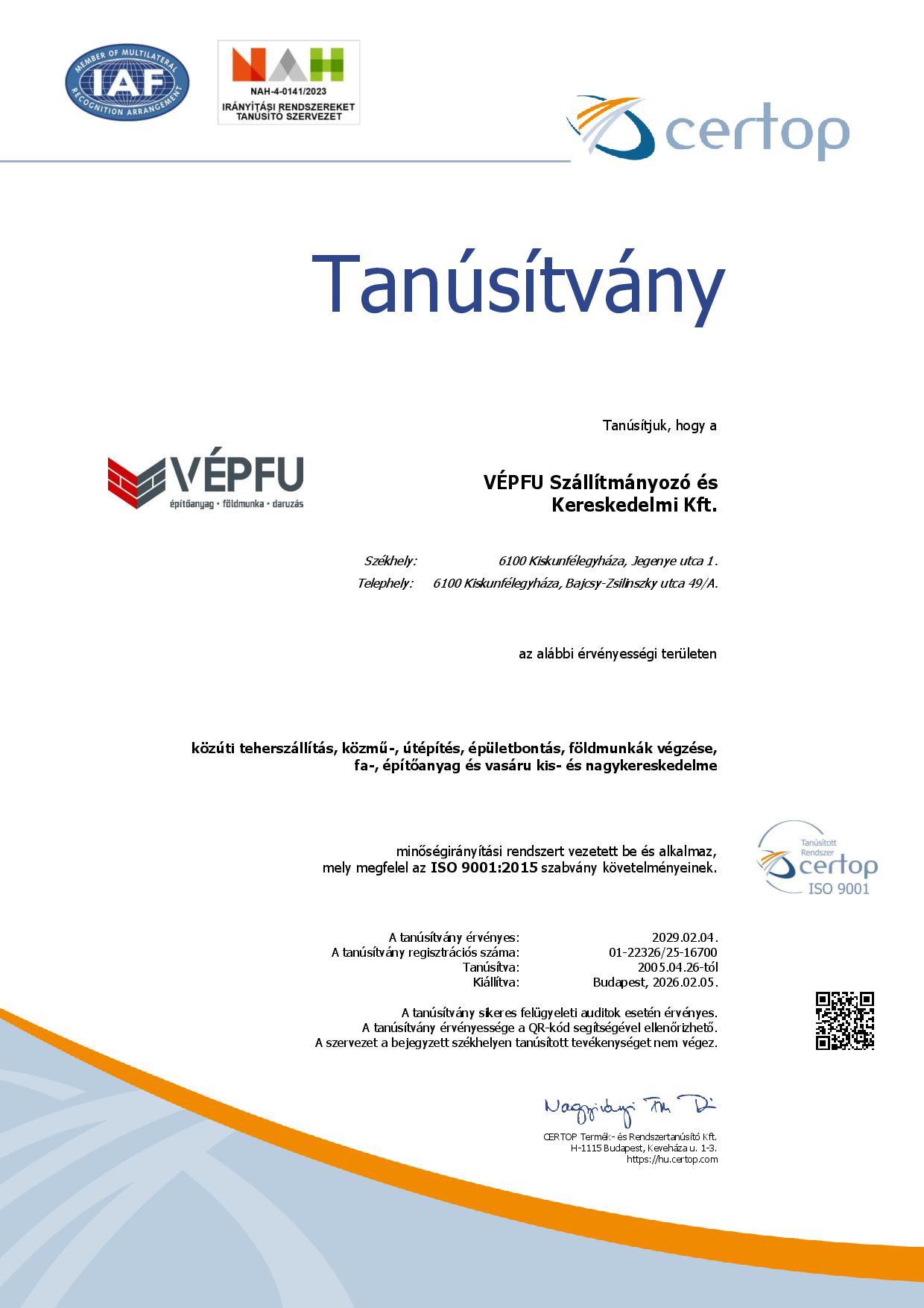szabványok követelményeit és az megfelel társaságunk céljainak.